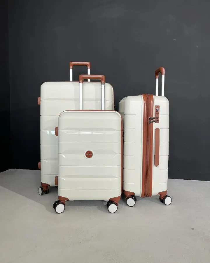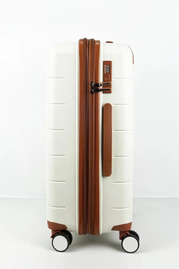 Чемодан Mironpan Paradise молочный М средний с дополнительным объемом