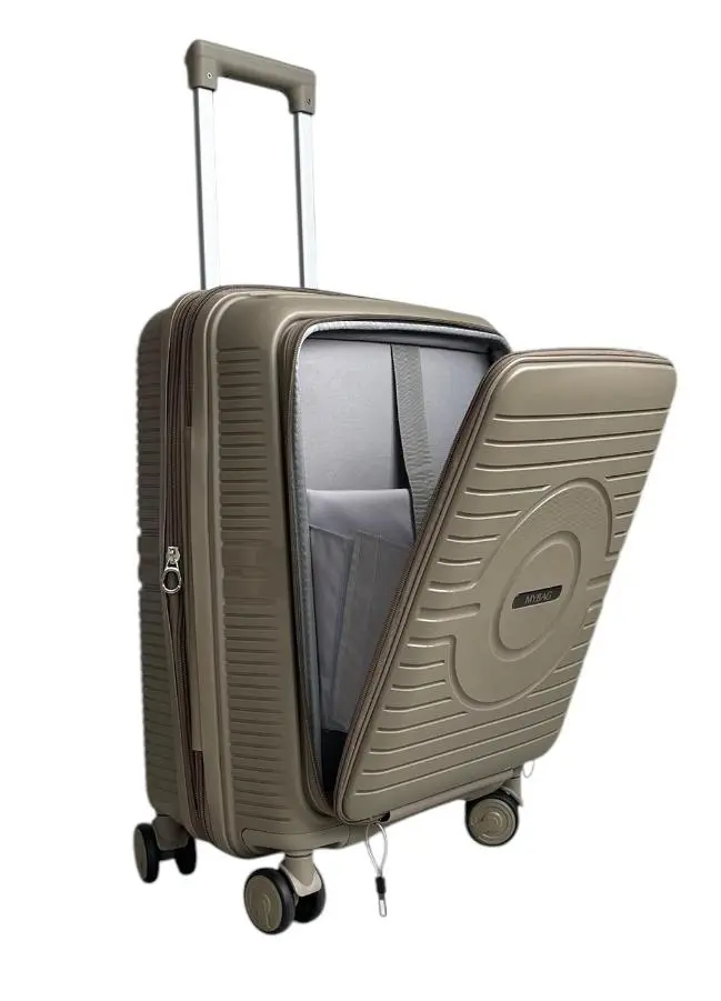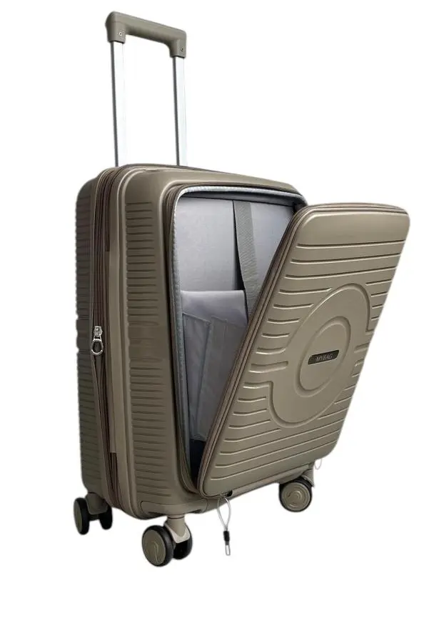 Чемодан MyBag Krug бежевый S для ручной клади с расширением с дополнительным отделом